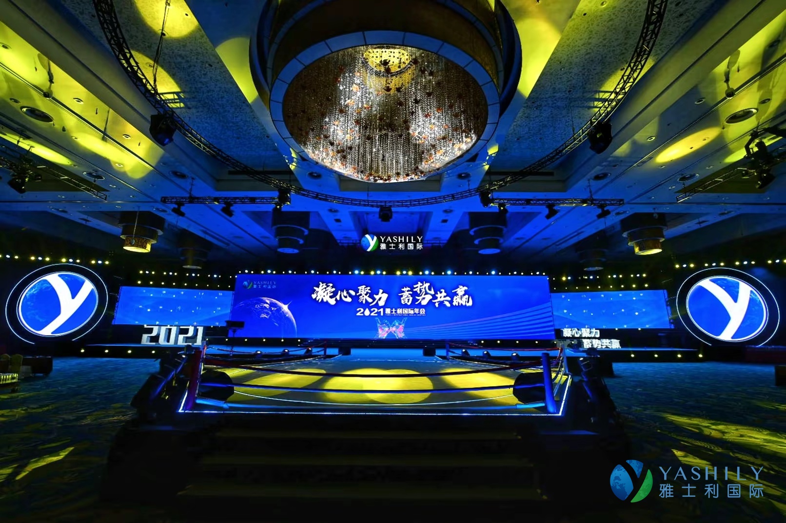 2021雅士利国际年会以“凝心聚力,蓄势共赢”为主题,舞台设计新颖现代,外场布置温馨有趣。明星代言人王耀庆、姚晨助阵,蓝沙发环节邀江南大学专家交流。年会增强了员工归属感,展现了企业文化,为未来发展注入活力。